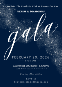 More than just a glamorous celebration, the Denim & Diamonds Gala supports a meaningful cause. Proceeds benefit the Foothills Club of Tucson, a nonprofit organization dedicated to helping local charities make a difference in our community. Your participation directly supports relief and assistance for those in need across Tucson. We rely on the generosity of our members and businesses like yours to continue our work!